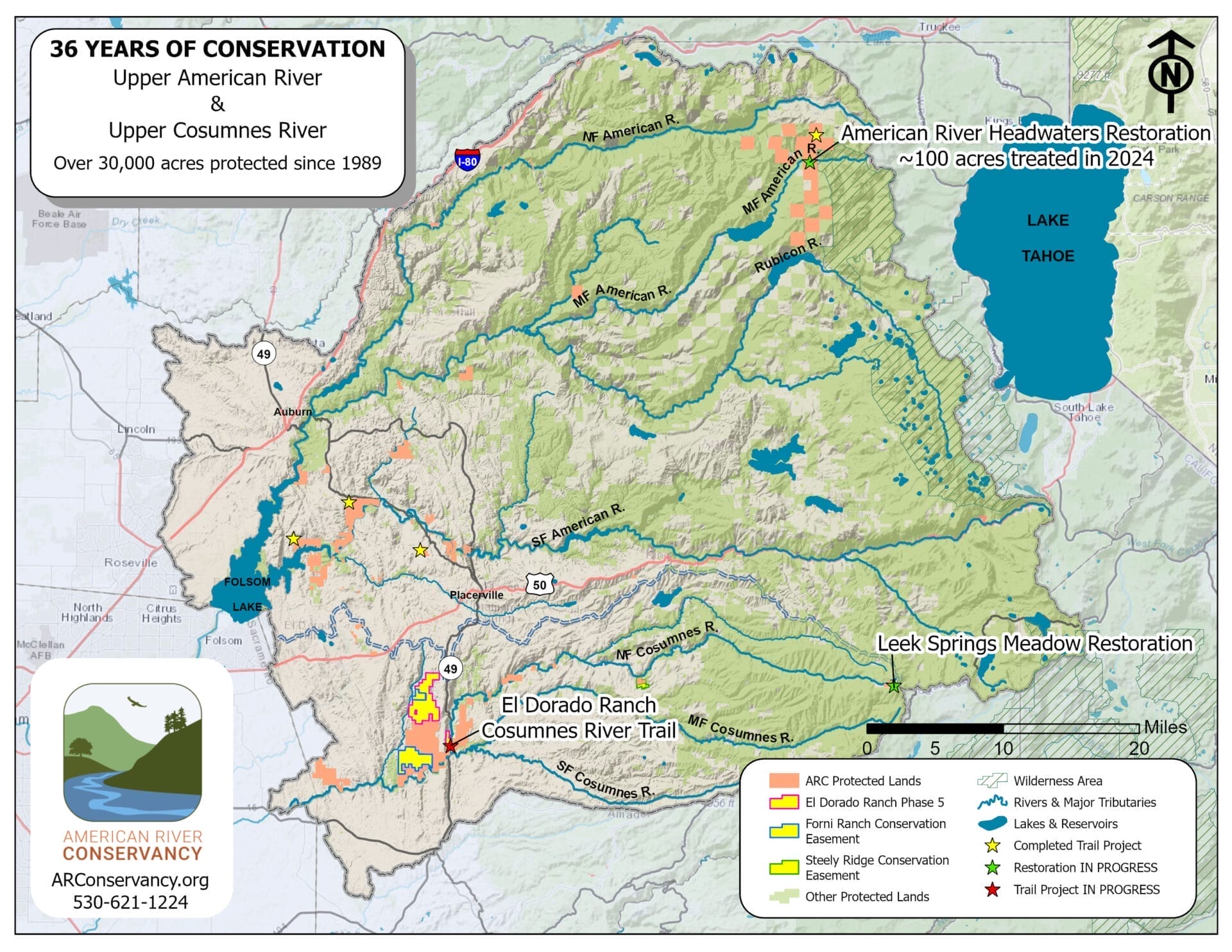The American River Conservancy protects habitat, native fisheries, scenic vistas, and recreational lands within the upper American River and Cosumnes River watersheds.